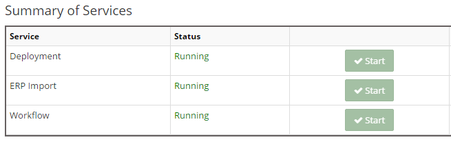 EPMware uses background services to handle various system operations including deployments, workflow processing, and ERP imports. These services must be started after initial configuration.